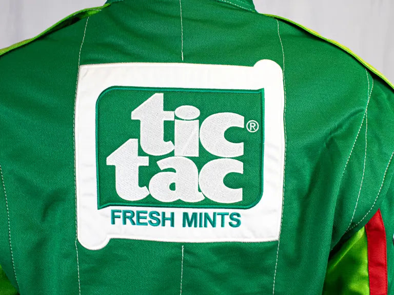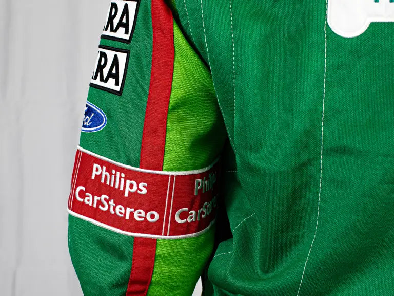 Beautifully finished in the team’s striking green 7UP livery, the suit features authentic embroidered sponsor patches including 7UP, Tic Tac, Philips Car Stereo, DEKRA, Ford, and Fujifilm, faithfully mirroring the design worn by Schumacher during his first F1 race weekend. The accompanying cap, emblazoned with the 7UP logo and personally signed by Schumacher, completes the ensemble.