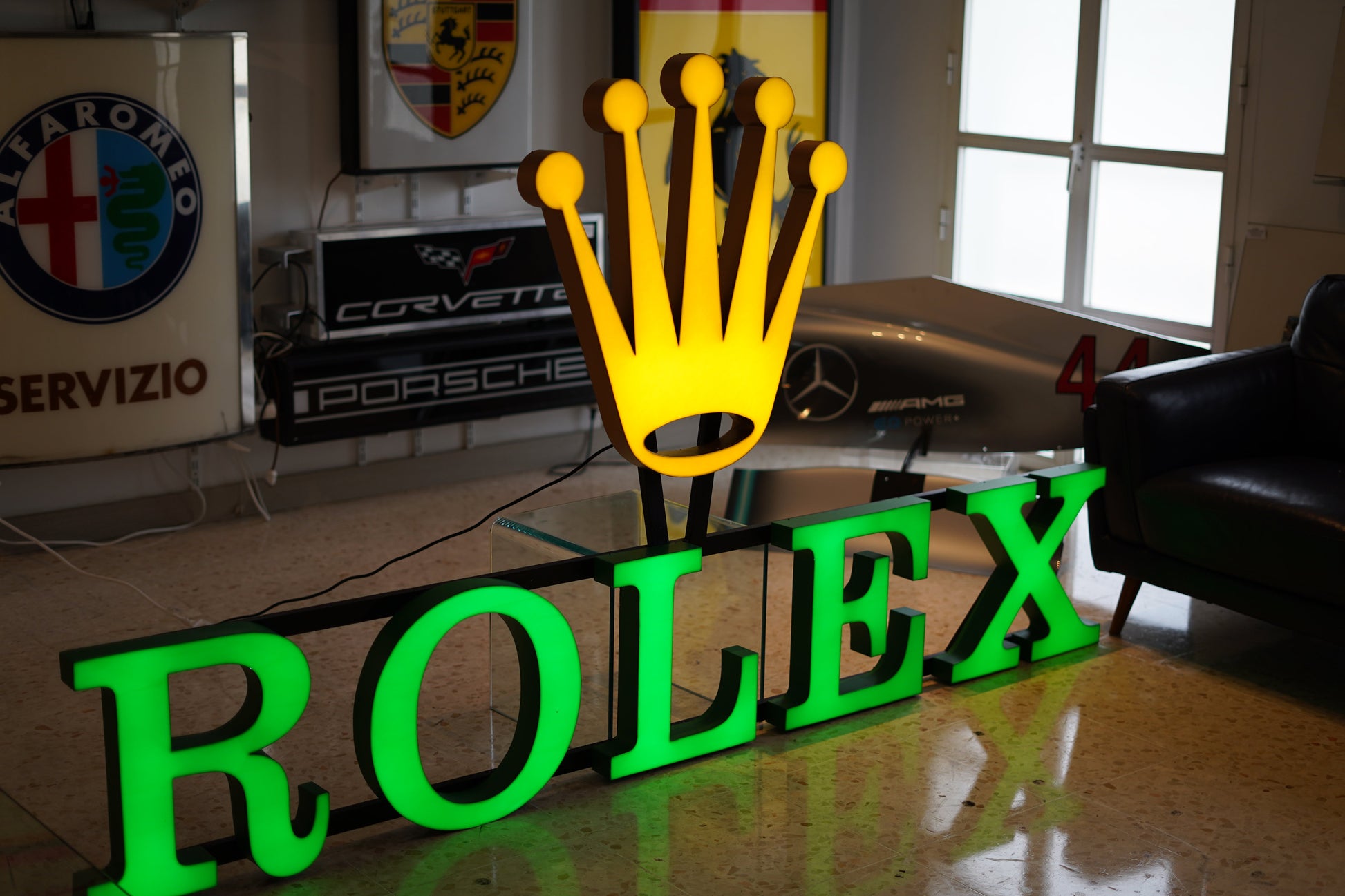 Perfectly suited for display in an office, dealership, showroom, garage, or private collection, this stunning sign is ready to hang and serve as a bold statement piece, embodying the elegance and prestige associated with the Rolex name.