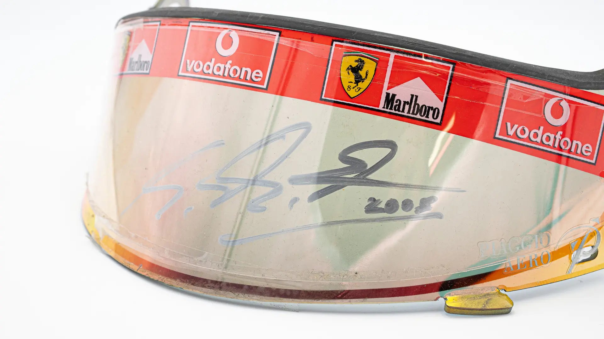 Signed boldly in silver ink and dated “2005”, the visor captures the essence of Schumacher’s later years at Scuderia Ferrari — a time of unmatched dominance and precision.