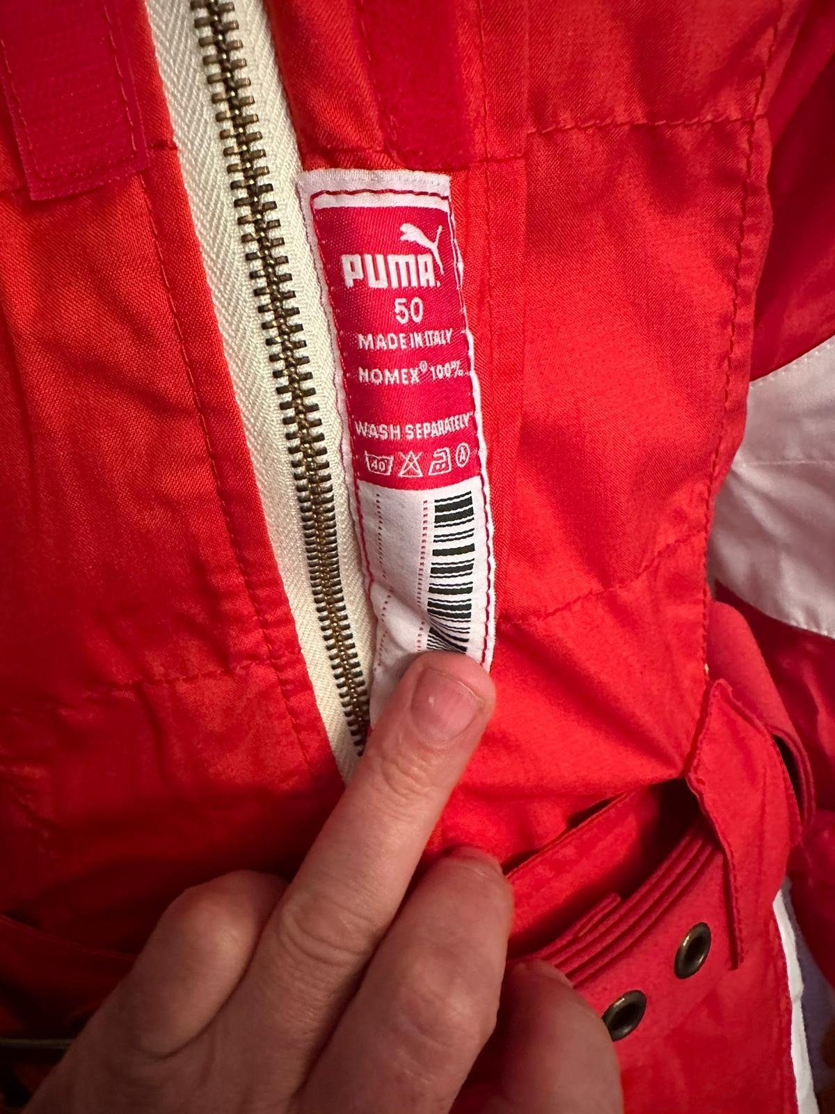 Here is a an extremely rare opportunity to acquire a 2023 F1 Ferrari Puma fireproof pit crew mechanic overall.