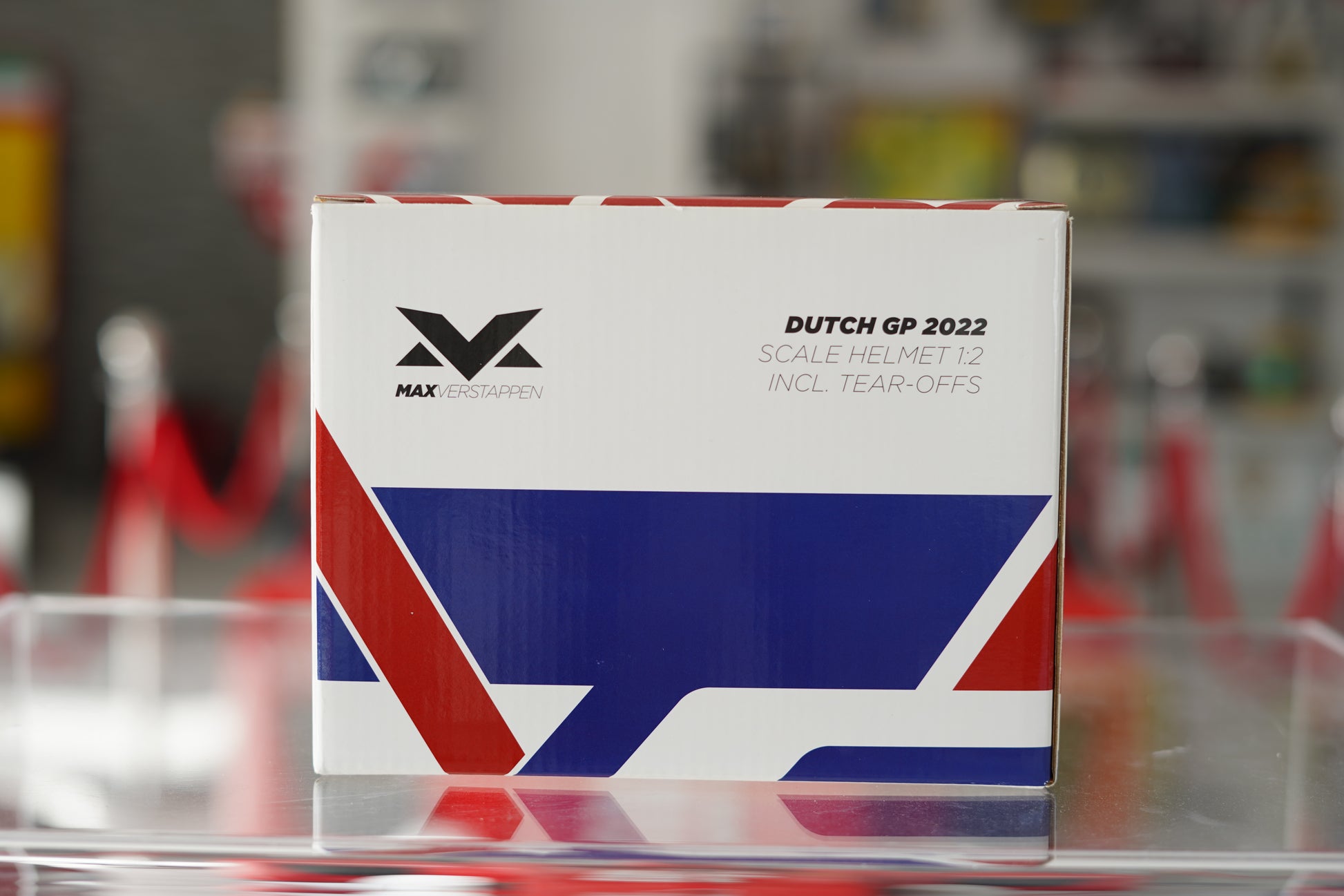Celebrate the dominance of Formula 1 World Champion Max Verstappen with this stunning 1:2 scale replica helmet from the 2022 Dutch Grand Prix.